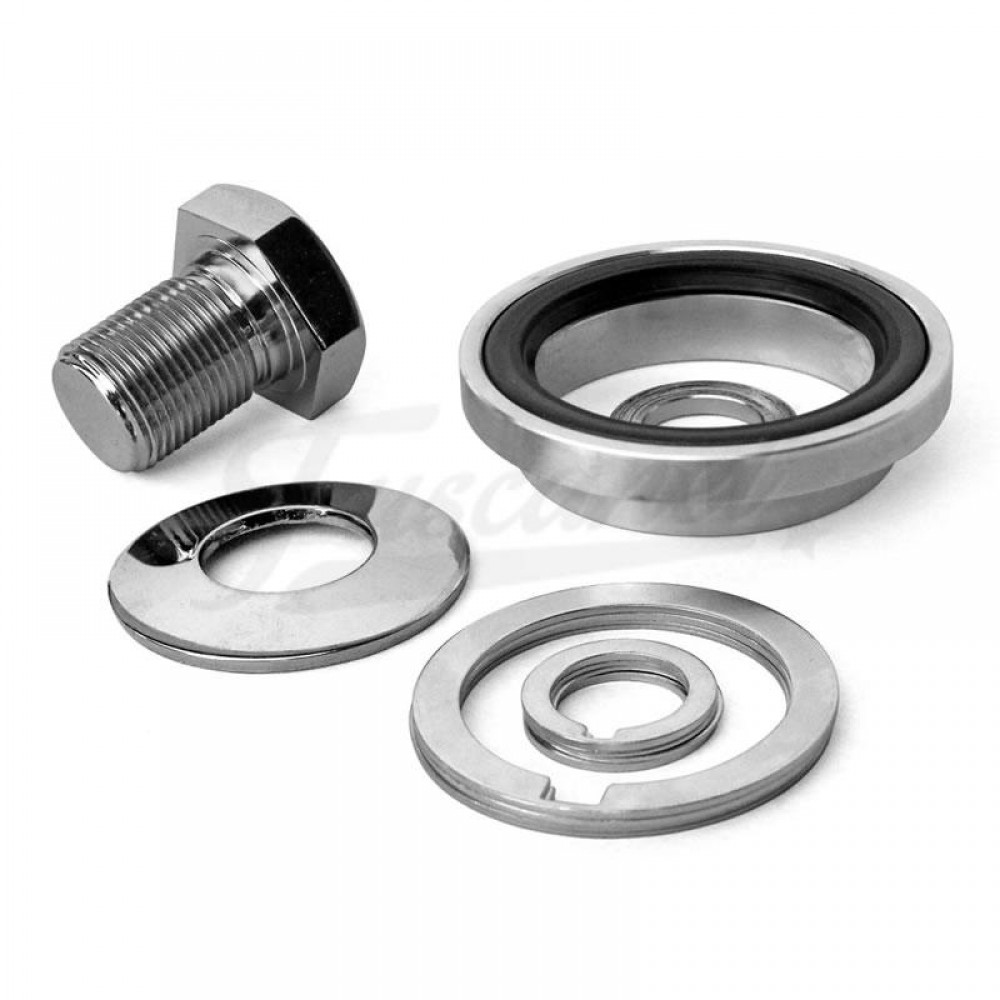 Incluye un porta reten para ser pegado en el block y el reten, asi como los separadores para alinear las poleas