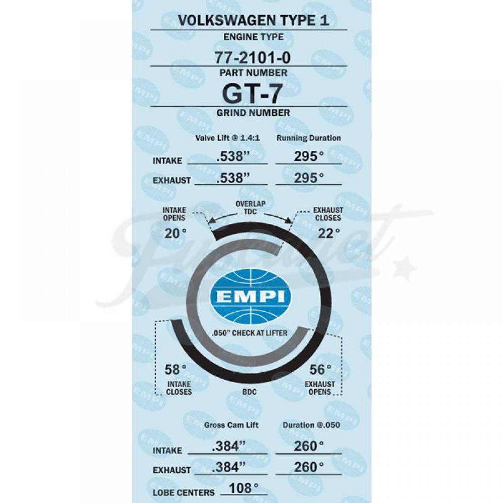 Arbol de levas VW Fusca Kombi EMPI GT-7 FK8 Cruzado